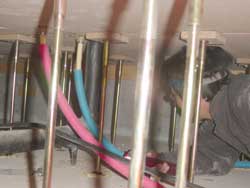 システムフロアの床下を通じて配線しました。重量のある蓄熱暖房でも我が家は床下補強済みですら安心です。