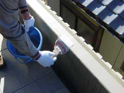 それでも余ったので、玄関庇のノッチモールまで塗ってもらいました。(やりすぎですね)