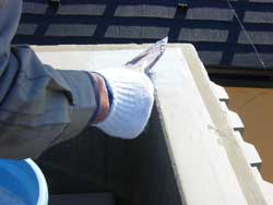 最近、掲示板で話題になっている防水材の対応年数を伺ったところ「20年以上はまず大丈夫です。」とのことでした。特に屋根部分はトップコートの上に空気層があり、その上に断熱ブロックが敷かれているので、キズもつかず、紫外線による劣化のないので対応年数は更に長いとのことでした。