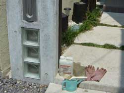 今回の作業については、本来建物の基礎に塗装しようとして準備していた防水剤でした。が、先日の2年点検で基礎を補修してもらった際に、防水剤を塗装してしまうと樹脂系のモルタルや硬化剤を塗るときに支障がでると言われてしまいました。そんなところで、せっかく用意した防水剤も使えずじまいでした。ということで、まだ基礎に関しては、経過観察もありしばらく手が出せませんので、門柱と玄関アプローチの打放しに防水剤を塗ることにしました。