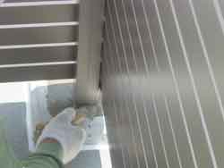 そもそも、我が家はルーバー手摺の採用が始まって最初頃のパルコンであったため、設置の仕方も経験値が無い中での施工だったとお思います。金属の膨張を考慮したコーキングによる逃げを確保していない作りでした。単純にルーバー手摺を固定をするために、断熱ブロックをカットし、その中に台座を置きモルタルで固定する方法で施工されました。