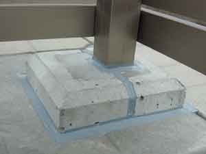 コーキングは、断熱ブロックと台座の間及び、台座を二つにカットしましたのでその間に入れられました。従来は、モルタルで埋められていましたが、これで収縮による圧力にも耐えられる仕様になりました。