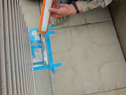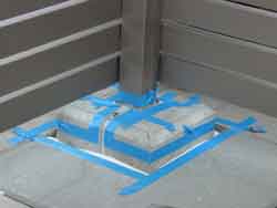 先日新しく設置された台座にバックアップ材を入れ、コーキングが馴染むようシリコン系のプライマーを塗り、その上からコーキングを流し込ん込みました。所要時間は1時間程度の作業でした。昨年行なった工事同様、綺麗に仕上がりこれで一安心です。