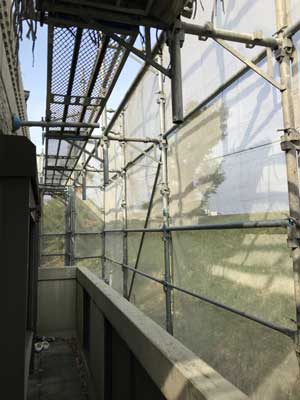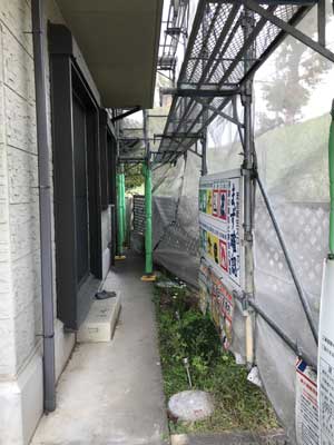足場が取れるまで、通り抜けには注意が必要ですがしばしの辛抱です