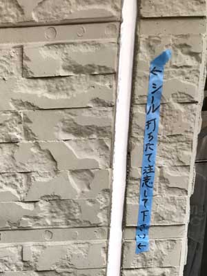 | ところどころシール打ち立てのマスキングテープで注意喚起 |