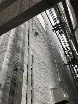 外壁塗装の下地となるプライマー塗りの作業が始まりました。