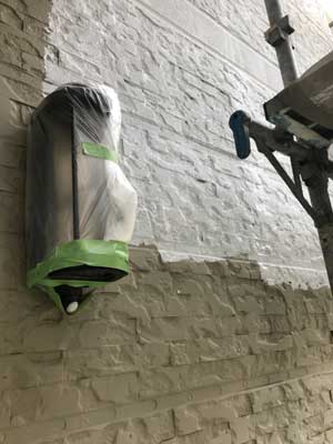 昔は油性でしかも吹付け工事が主でしたのでマスクをして作業をしていたようですが、今は水性が主流となり、しまも手作業となるためマスクが無くても大丈夫なようです。