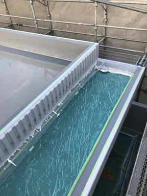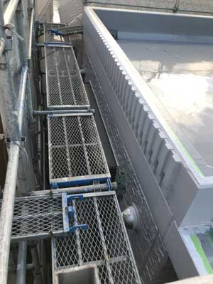 | 外壁塗装の為に足場に括りつけられた手摺が屋上に移動 |