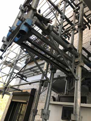 | 大成建設のシートが外され、足場が撤収されていきます |