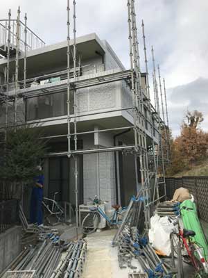 本日、足場が撤去され、新しいグレーカラーの我が家が露わに。
