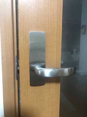 ドアノブを交換することもできるのですが、まずは分解して構造を確認してみました。ノブのロールバックとラッチボルトの噛み合わせ部分が鉄粉で汚れていましたのできれいにふき取り、固くなっていたラッチボルト内にシリコン系の潤滑油を注してみました。