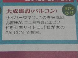 先週末、またまた朝刊折込シラシで「我が家のPalcon」が紹介されました。