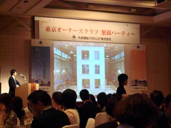 会の主旨はユーザーを集めてリフォームや紹介制度の説明など、ユーザーからの掘り起こしイベントといった具合でしたが、営業的な匂いが全然せず、本当にホテルで食事をご馳走になったという会でした。このへんのソフトな押出しが大成さんらしいところです。