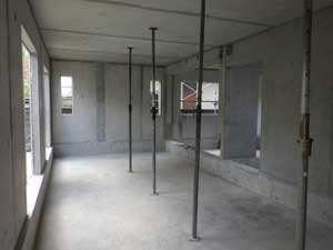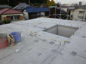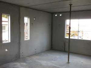 我が家の時と比べると、基礎にピンホールがほとんどなく、内壁のPC板もそのまま打放し板で使うのかと思うくらいきれいな仕上がりでした。工事のあら探しをしてやろうかくらいに思っていたのですが、養成中の室内はどこも綺麗で10数年前から比べると現場の品質管理のレベルがずいぶん高くなったように感じました。