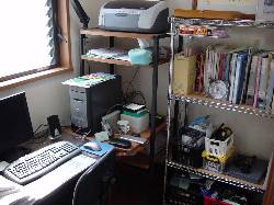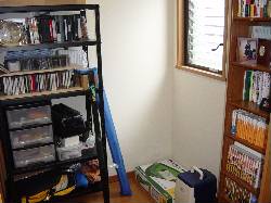 我が家の完成から2ヶ月が経過しました。ようやくモノが片付いてきましたが、ここだけは相変わらず片付きません。そう、我が家の情報発信基地「書斎」です。「我が家のPalcon」の更新作業はもちろんですが、家で勉強したり仕事をしたり本を読んだりするのに最適な場所です。4帖ほどのスペースですが、私にとっては快適なエリアです。部屋の中心に仕切りがあり2帖づつ機能をわけて使っています。北側は勉強や仕事をするエリア。南側は趣味のエリアです。南側には、棚の上にスキー競技をやっていた頃の写真を飾って自己満足?に浸っています。また空きスペースには現役時代に使ったスキーを実家から持ってきて飾ろうかと計画しています。