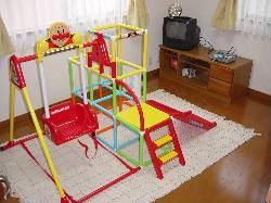 子ども部屋にアンパンマンのジムを設置しました。最近お天気が悪く娘が外で遊べませんので、そんなときはここで思う存分遊びます。本当は屋上に設置したかったのですが、雨ざらしでは傷むのが早いので、室内に設置しました。借家時代では考えられない待遇です。自分の娘ながら羨ましい限りです。