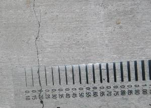 入居7ヶ月が経過しました。これまで目立った問題はなかったのですが、とうとう見つけてしまいました。2週間前に行なわれた定期点検の際に見落としていたのですが、履きだし窓のサッシの影の基礎部分にヘアクラックがあるのを発見しました。まぁ、ヘアクラックが1本もないというのはありえないとは思っていましたが、見つけてしまうとやはりショックですね。0.25mmの表層収縮クラックですので大したことはないのですが、あまり気持ちの良い物ではありません。