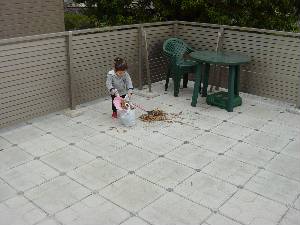 すっかり、秋らしくなってきました。敷地内に落ち葉がやたらと目に付くようになりました。門柱から玄関、犬走りとつづくコンクリート部分に落ち葉がたくさん溜まっています。毎週末掃除をしていますが、それ以上に目立つのが屋上です。同じように毎週落ち葉を掃き集めて掃除しています。焚き火ができそうなくらい集まりますが、さすがに屋上では出来ませんので、集めた落ち葉は花壇の肥料にしています。先週は娘が掃除を手伝ってくれました。掃除好きのようで、一枚でも落ちていると気になるようで拾ってきます。