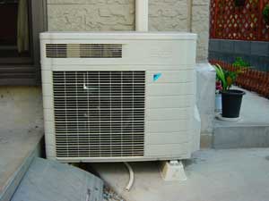 | フル稼働の室外機からは熱風と除湿水が排出されます |