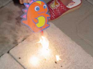 断熱ブロックに直接火花が飛び散るのは良くないと聞きましたが、まぁ、手持ち花火ですからね。たいした影響は無いでしょう。気休め程度ですが軽量ブロックを置いてその上でやってみました。火花が完全にブロックの外に飛び散っていましたが、見た目は特に問題はありませんでした。
