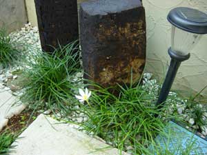 玄関アプローチに植えてあるリュウノヒゲから白くて綺麗な花が咲きました。確か去年は咲かなかったような気がします。気候に影響されるのでしょうかね?不思議です。