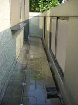 打ち水を行なった場所は2階ベランダの断熱ブロックです。パンチングメタルを通して風が部屋にも入り込むのでなかなか効果的です。それまで室内に入ってくる熱風だった外の風が、ヒンヤリとした風に変わりました。エアコン三昧の良いですが、たまにはこうした涼み方も良いものですね。 |