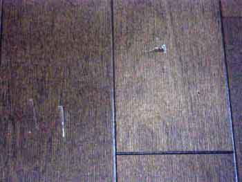 夏休みに外出する際、荷物の荷造りしているときに、ついでに書斎も片付けようと作業をしていたら、床にキズをつけてしまいました。しかも陥没級です(涙)
