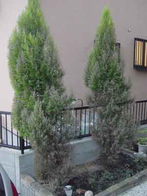 最近朝晩肌寒くなりましたが、それが影響なのかどうなのかはわかりませんが、お隣さんとの境界に植えたゴールドクレストが枯れてきました。