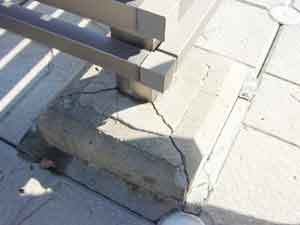 昨年屋上のルーバー手摺を固定するコンクリート製の台座がひび割れを起こしましたが、今年も違う場所ではありますが、同じような状態の台座が発見されました。