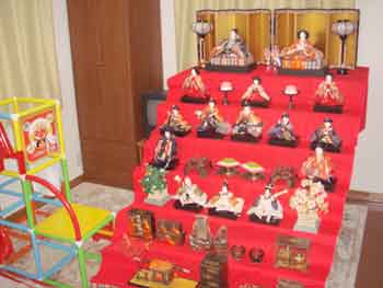 | ひな壇飾りのお陰で部屋ががいっぱいです |