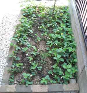 以前、ハーブを植えていた場所なのですが増えすぎてしまい、一部を他に移し、一株のイチゴを植えたのですが、そこから子苗が伸び、2年の間に一面イチゴ花壇になりました。イチゴの生命力ってすごいですね。