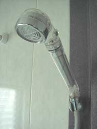 義母から頂いたものなのですが、マイナスイオンと遠赤外線効果があるトルマリン(電気石)シャワーノズルです。スケルトンタイプで水圧でノズルのバーが中に組み込まれているトルマリンの回転軸が、回り、その後ノズル内にあるTLセラミックと、マグネットによって、マイナスイオンが放出される仕組みのようです。マイナスイオンの発生量は、通常のシャワーの25倍だそうです。