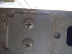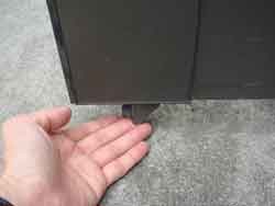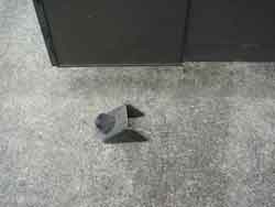 しばらくしてから、家族から門柱の端に金属片が落ちていると言われ、スライドドアのストッパー部分が割れ落ちているのを確認しました。