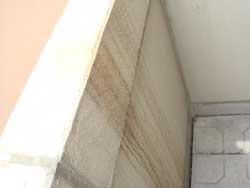 左の写真のとおり、最近ベランダの手すりに赤茶けた雨垂れが目立つようになりました。PC手摺の内側なので外からは見えませんが、それにしても汚い跡であります。