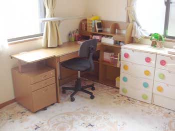 まぁ、そうは言っても上のお姉さんの部屋には机がありますので、どうしても自分の部屋に机を置きたかったようです。「毎日自分の机で勉強したい」と下の娘が請願したときには、ウソとはわかっていたものの、思わず感激し購入を約束してしまいました(笑)