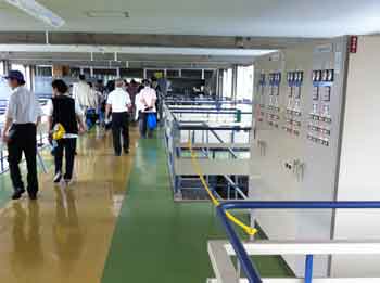 原水から水道水になるまでに、オゾン処理、活性炭吸着処理など、様々なプロセスを経て我々都民に供給されていることを知りました。また敷地内のいたるところに太陽光パネルが設置され、施設内の発電も賄っているようで、まるで工場のようでした。