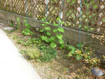 今年も夏の日差し対策として、グリーンカーテン用に花壇に蔓植物を植えました。