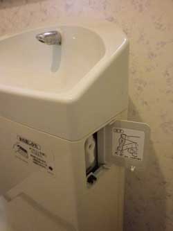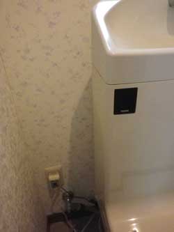 リモコンの電池が切れたわけでもないのに、スイッチを押しても水が出ず、お陰でウォシュレットを使うためには、毎回電源を入れ直して使っていました。洗浄はタンクの右側のカバー奥にあるコックを手で回して水を流しています。