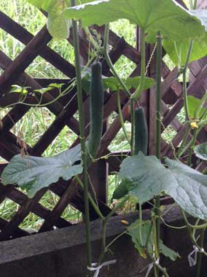梅雨明け後は本格的な収穫期を迎えますが、食卓にのぼっても飽きない野菜にしようということで、今年は種類を絞り、きゅうり、ゴーヤ、しそ、バジルのみとしました。天候が良かったのか順調に育っています。早速第一陣として食卓にキュウリ、ナスが出てきましたが味もまずまずでした。