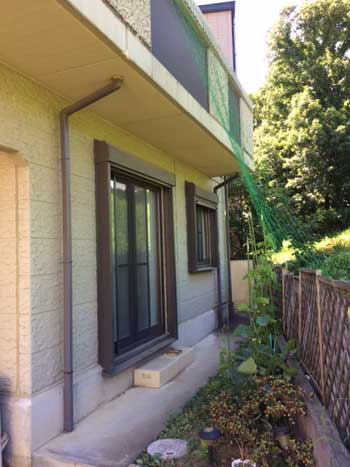 ネットを設置した夕方にはツルが巻きついていましたので、あっという間にグリーンカーテンができそうです。