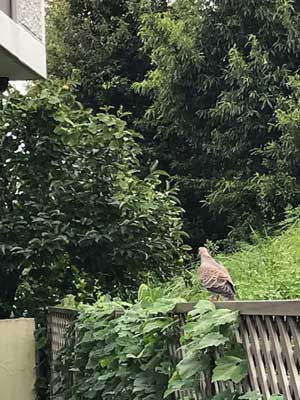 壁でセミが鳴くだけであれば、これまでと同様なのですが、今度はハトが我が家の周りをうろつくようになってしまいました。よくよく観察していると、なんとハトが壁のセミを捕まえているのです。セミがゴーヤのネットに潜り込んで鳴いていた頃は、ハトも近づけなかったようですが、直接壁で鳴いているので、格好の狩り場になってしまいました。おかげて車や土手側のラティスにハトが何匹も来てくれるようになりましたw