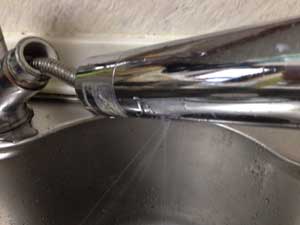 浄水フィルタが格納されているアーム部分に亀裂が入ってしまい水が漏れてしまいます。亀裂があるアームの中央部分から細かなしぶきをあげて水が漏れ出す状態になってしまいました。特に乱暴に使っているわけではないのですが、築18年の設備ですので劣化ですかね?