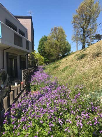 新緑の季節となり、土手の「はなだいこん」が満開となりました。