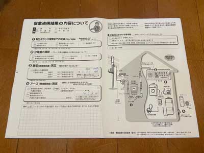 分電盤の配線、漏電検査、アース測定などを点検いただき問題ないことを確認頂きました。