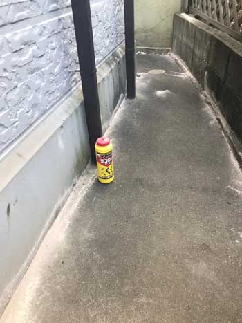 とりあえず、湿りけのあるコンクリートのアプローチの両脇を中心に散布しましたので、これでしばらく様子をみたいと思います。