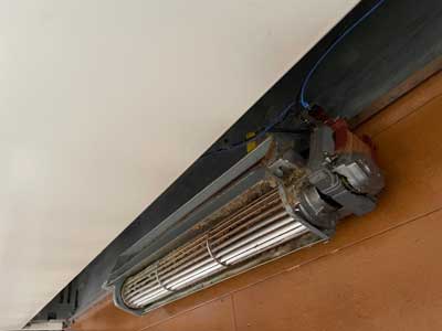しかたなく、自分で設置説明書をもとに風向部分を分解し、ファンを取り出し点検をしました。3機のファンそれぞれの埃が熱で焦げており、それが溜まりファンに抵抗を与え動かない状況でした。丁寧に埃を取り合払い、潤滑油を入れファンが正常に稼動できるようになりました。