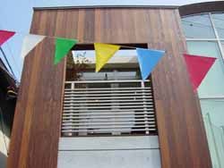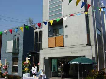 オープン初日ということもあり、まだ新しい香りのする建物でした。それもそのはず、今朝まで細かい仕上げ作業をしていたとのことでした。 ここはパルコンSwitchとAXLのコラボレーションから生まれた展示場でした。正面から見ますと右側にスランダードな3階建て打放しの