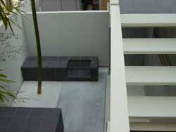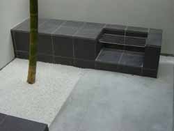 建物の裏手には、綺麗な白砂利から立派な孟宗竹が伸びています。アトリウムの中2階踊り場のドアから眺めです。