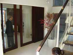 リビング入り口もガラス扉で開放的です。アトリウム部分もリビング的な感覚ですね。