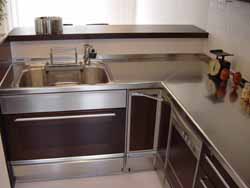 キッチンはステンレスのシャープな感じとウッドの木目が折り重なって落ち着いた仕上がりです。